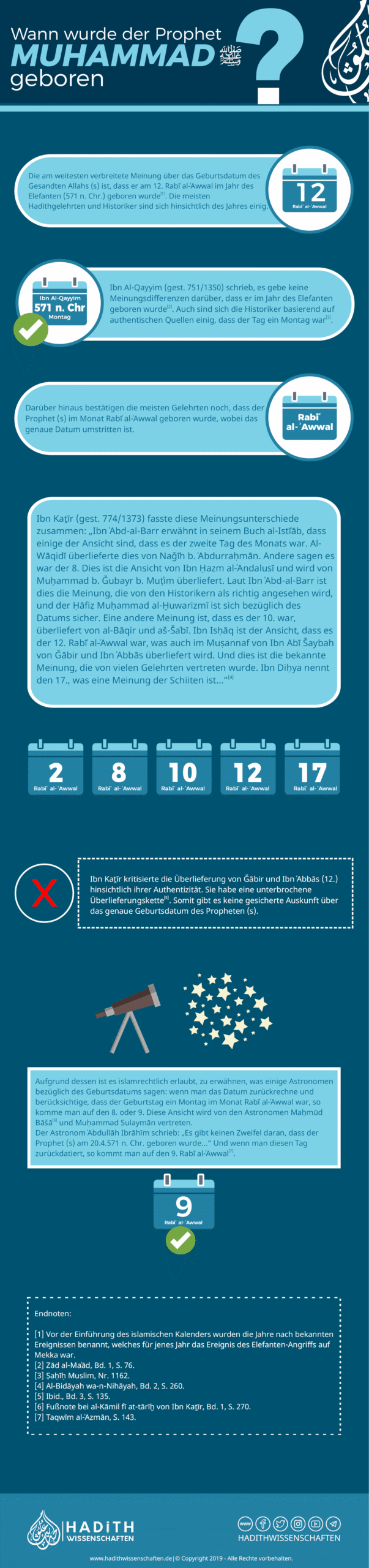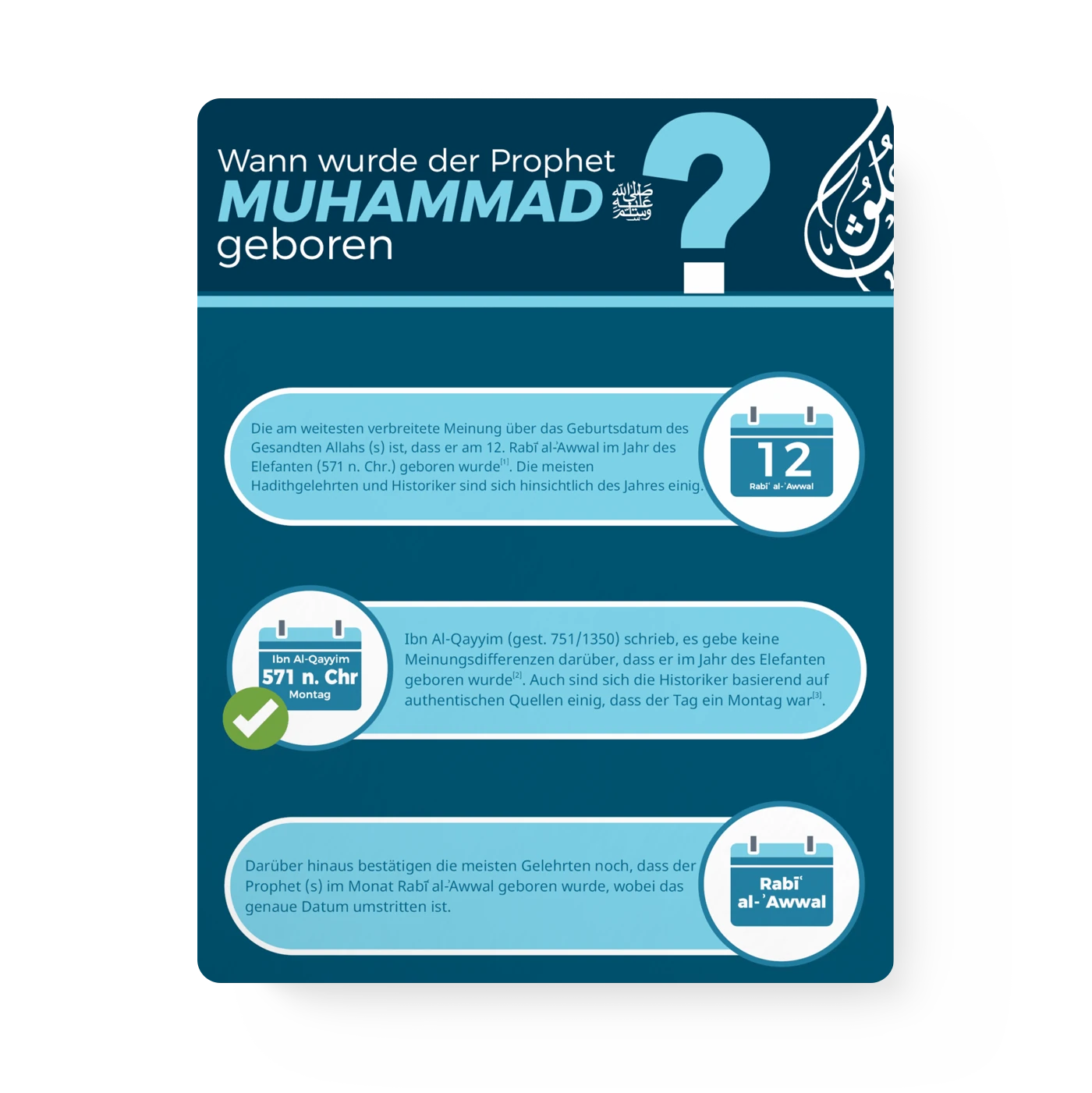 Diese Infografik gibt einen Überblick in die Meinungsunterschiede über das Geburtsdatum des Propheten Muhammed (s).